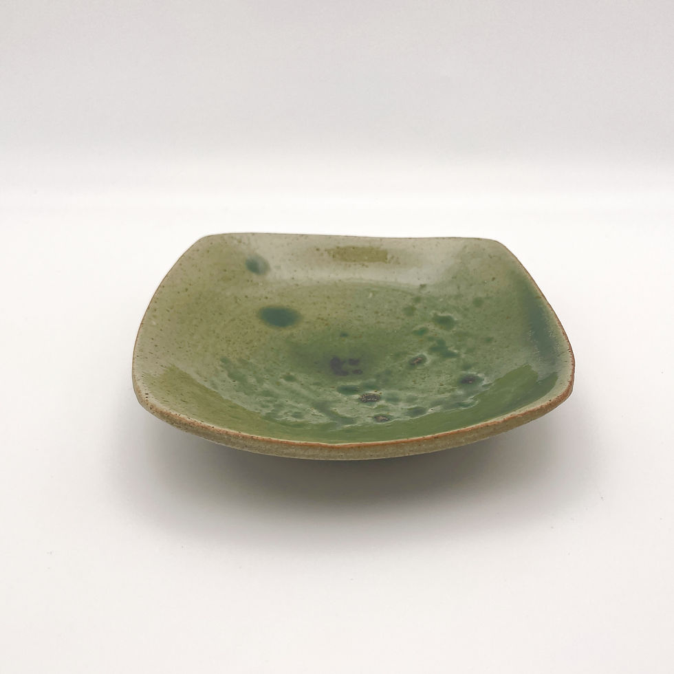 Small squared dish with Oribe glaze and ash deposits